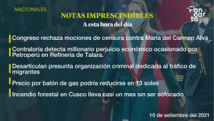 Congreso de la República rechaza mociones de Censura contra María del Carmen Alva. Perú. Notas Imprescindibles 10 de septiembre de 2021 Con 74 votos en contra, 33 a favor y 8 abstenciones el pleno del Congreso