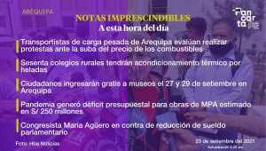 Congresista María Agüero en contra de reducción de sueldo parlamentario. Arequipa. Notas imprescindibles. 22 de septiembre de 2021 La parlamentaria María Agüero declaró que no está de acuerdo con el proyecto de ley