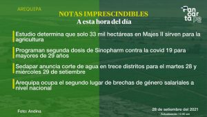 Majes II solo tiene 33 mil hectáreas para la agricultura. Arequipa. Notas imprescindibles. 27 de septiembre de 2021 El proyecto Majes Siguas II solo tiene 33 de 38 mil hectáreas utilizables para la