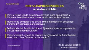 Defensoría pide al ejecutivo culminar reglamento de Ley del Cáncer 20 de octubre de 2021 Mediante un comunicado de Prensa, la Defensoría del Pueblo exhortó al gobierno central para que