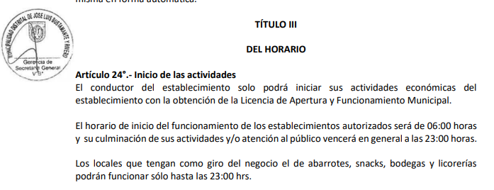 En 2020 fue la última vez que se actualizó el “Reglamento para el Otorgamiento, Control y Fiscalización de Licencias de Funcionamiento y Autorizaciones” (Ordenanza Municipal N°12).