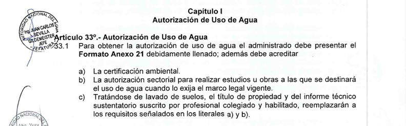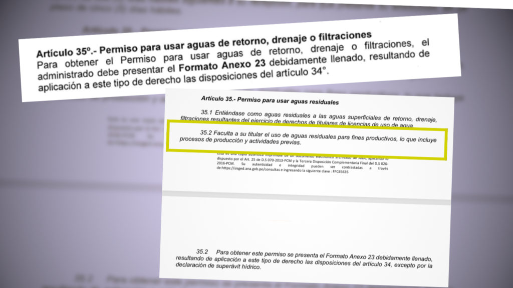 El 5 de septiembre de 2024, en el Diario Oficial El Peruano, la Autoridad Nacional del Agua (ANA) publicó la modificatoria del Reglamento de Procedimientos Administrativos de Derechos de Uso de Recursos Hídricos (R.J. 0357-2025-ANA) y en se ella amplió los alcances del Permiso de Uso de Aguas Residuales. El cambio normativo destrabó un proceso que hasta entonces había sido observado por instancias técnicas de la ANA. En ese sentido, el cambio generó el criterio técnico que facilitó otorgar el permiso.