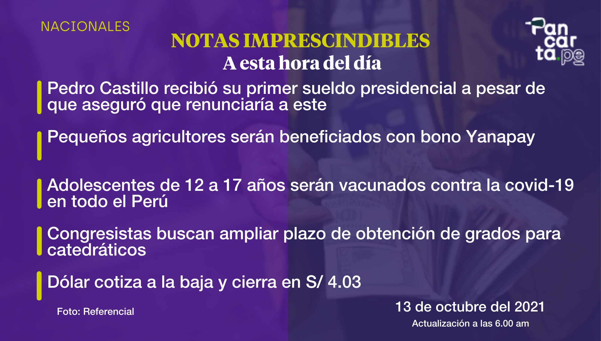 El monto colocado en la cuenta bancaria del presidente es de 17 mil 600 soles correspondientes al mes de agosto y los 3 últimos días del mes de julio