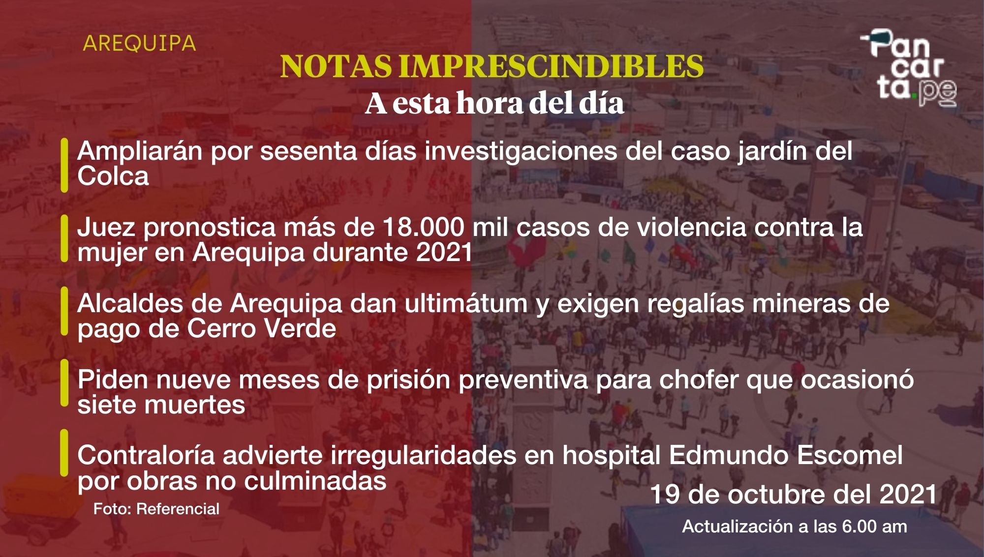 El ministerio público solicitó nueve meses de prisión preventiva para el chofer acusado de causar accidente en el que murieron siete personas en la carretera Arequipa-Puno. Revisa esta y otras notas imprescindibles en nuestro resumen diario de noticias, para que empieces el día informado.