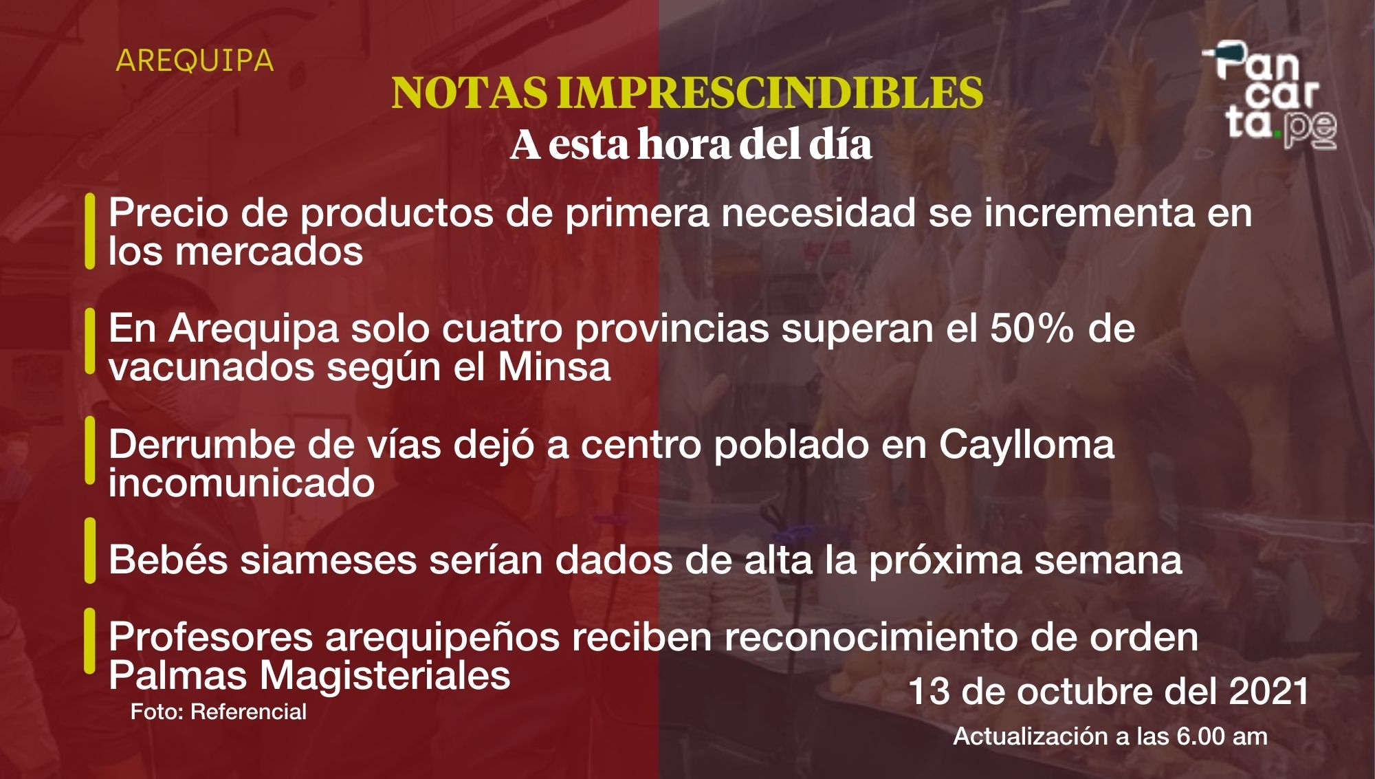 El precio de los productos de primera necesidad se incrementaron durante los últimos días en los mercados de la ciudad blanca. Revisa el detalle de esta y otras notas imprescindibles para empezar el día informado.