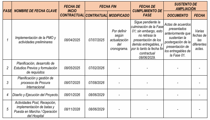 El consorcio fue designado por Francia y tiene como misión brindar asistencia técnica para el diseño, construcción y puesta en marcha del hospital. Esa asistencia se organiza a través de una oficina llamada PMO Directiva, que funciona como una oficina de gestión de proyectos. El contrato tiene un plazo de 50 meses y se divide en cinco fases. Sin embargo, desde la primera fase —la implementación de la PMO y actividades preliminares— ya se han detectado irregularidades.