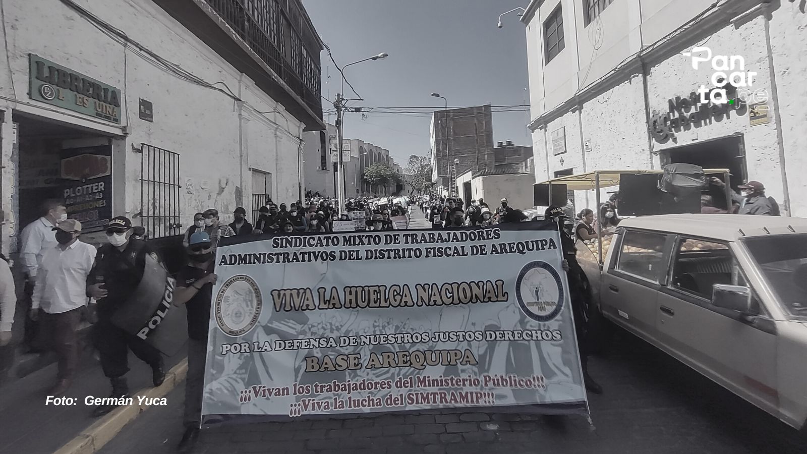 Al rededor de 300 trabajadores del Ministerio Público se unieron al pedido de los administrativos del Poder Judicial y marcharon por la Plaza de Armas de Arequipa. Los servidores exigen a la La fiscal de la Nación, Patricia Benavides, cumplir con su pedido. En la protesta participan aproximadamente el 60 % de los trabajadores totales, por ello la mayoría de áreas del Ministerio Público están paralizadas.