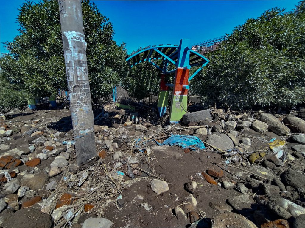 Bajo escombros quedó el parque ubicado en el sector de Pozo Negro. Lodo y piedras cubren las bancas