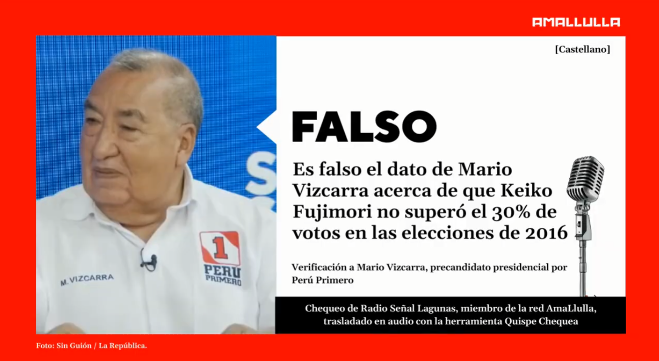 En función a lo expuesto, es falso el dato del precandidato presidencial Mario Vizcarra acerca de que Keiko Fujimori no superó el 30% de votos en las elecciones presidenciales 2016.