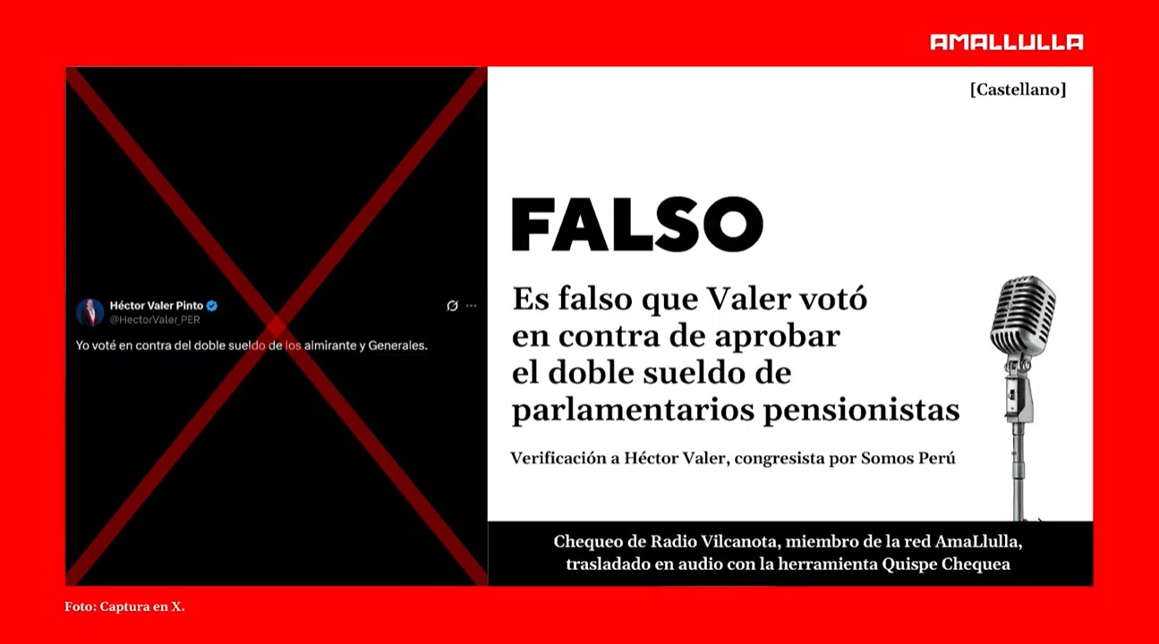 Este chequeo fue realizado por Radio Vilcanota, miembro de la red AmaLlulla, con la herramienta de inteligencia artificial Quispe Chequea, de OjoPúblico.