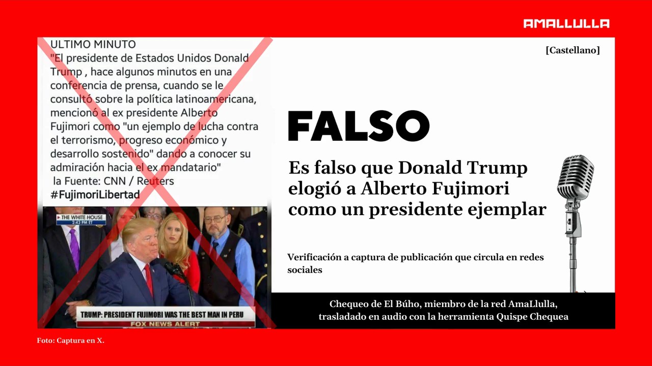 Sin embargo, tras encontrar el origen de la fotografía y revisar los discursos públicos de Trump, AmaLlulla concluye que esta información es falsa. En realidad, la imagen muestra una actividad que no tiene nada que ver con el tema y en ningún momento se realizaron comentarios sobre Fujimori o sobre el Perú.